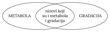26 Gradacija se može definirati i kao »napredovanje po kriteriju intenziteta«, a hiperbola kao »zamena po veličini i po intenzitetu« u okviru leksičkosemantičkog funkcioniranja riječi (Grickat, 1967:220).