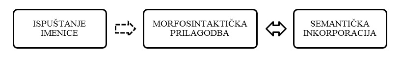 Preostaje nam razmotriti kako se gramatički opis hrvatskih PIP-ova (§ 4) odražava na velike teorijske pristupe što smo ih ukratko bili opisali (§ 3). S pretpostavljenim modelom ispuštanja imenice, morfosintaktičke prilagodbe i semantičke inkorporacije ugrubo se podudaraju proučavani lingvistički pristupi: elipsa → nominalizacija/konverzija ↔ koercija. Analizom smo ustvrdili da procesi nisu jednosmjerni, nego međusobno utječu jedan na drugoga u obama smjerovima i to usporedno, a ne susljedno. Rijetko je kada model ostvaren u cijelosti, u svim koracima (npr. negdje nema elipse), već se obično ostvaruje u različitim stupnjevima, nekad djelomice, nekad gotovo sasvim (npr. sintaktička prilagodba bez morfološke). Fenomen PIP-ova jezgrovito bismo opisali donekle ovako: